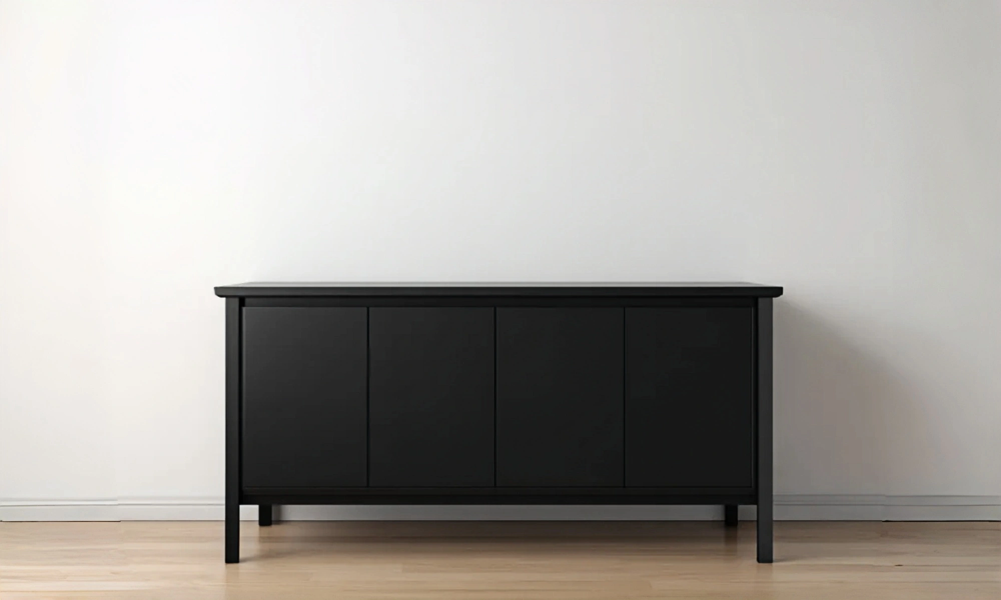 Dieses moderne schwarze Sideboard bietet eine schlichte und elegante Aufbewahrungslösung für verschiedene Wohnbereiche.